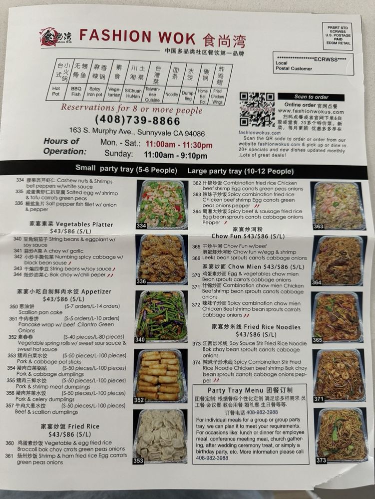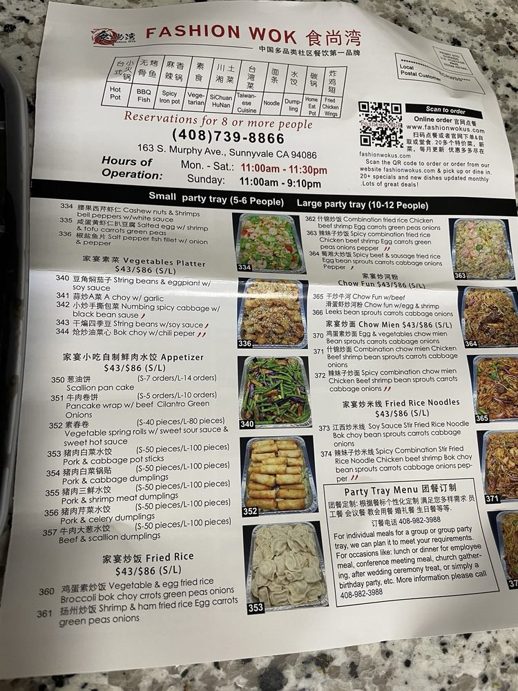 Fashion Wok, located in Sunnyvale, CA, offers a diverse menu of Chinese, hot pot, and seafood dishes. With options for vegan and vegetarian diners, as well as a range of utilities including delivery and catering, Fashion Wok caters to a wide audience. Customers praise the flavorful dishes, such as the Pork and Garlic with Black Bean Pepper Sauce and the Spicy Mongolian Whole Lamb Pot, which showcase a fusion of Taiwanese, Sichuan, and Hunan flavors. The generous portions and reasonable prices make it a popular choice for families and individuals looking for a satisfying meal. With a cozy atmosphere and attentive staff, Fashion Wok provides a welcoming dining experience. Don't miss out on the spicy offerings and extensive hot pot menu when you visit this hidden gem in Sunnyvale.